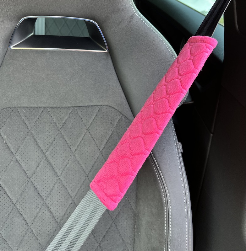Luxusný dizajnový návek na bezpečnostný pás ružový. Návlek je z makkého materiálu. Pás obopne vďaka pevnému suchému zipsu.