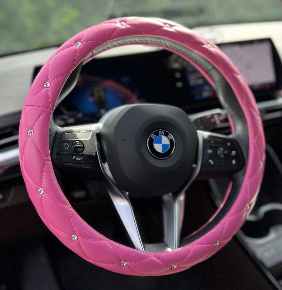 Luxusný prešívaný poťah kožený s kryštálmi po obvode volantu.